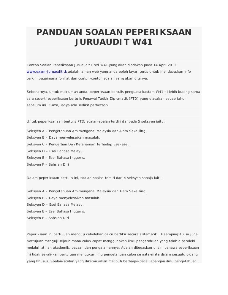 Contoh Soalan Peperiksaan Dan Panduan Juruaudit W41 Blog Informasi